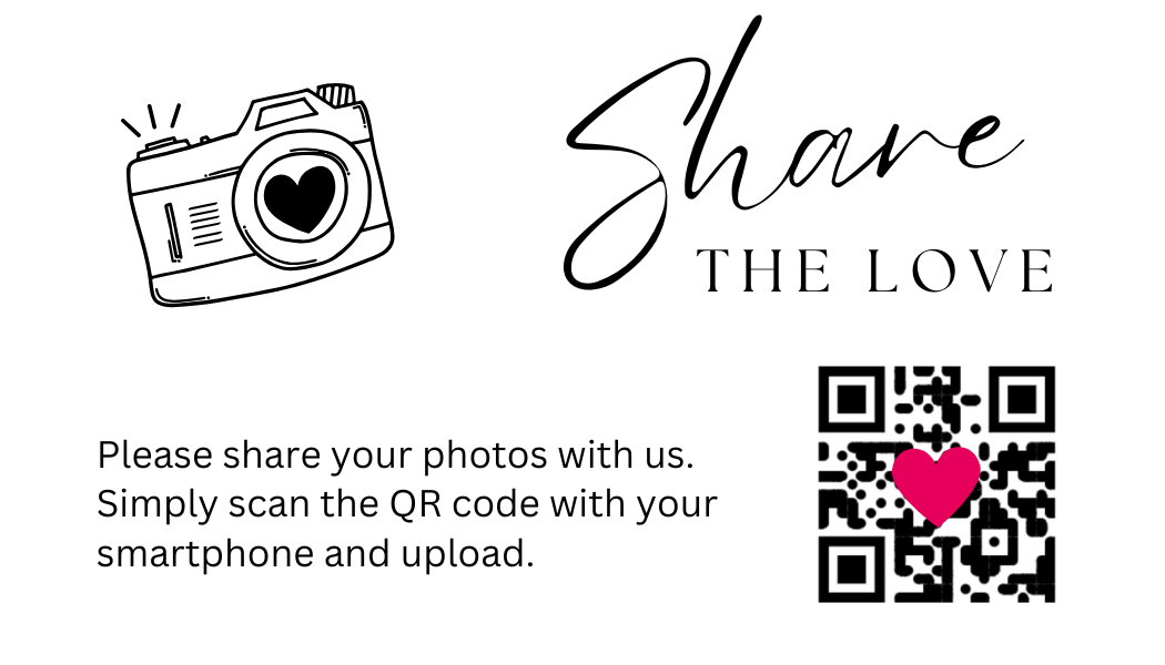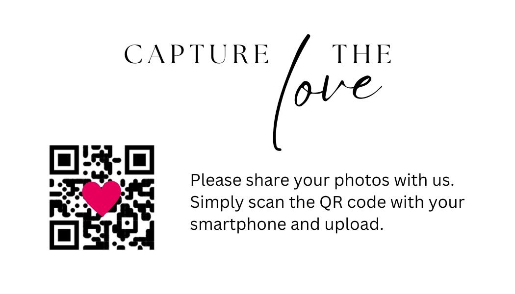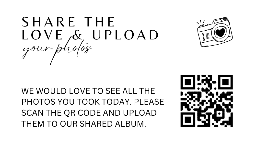 Share your upload link or display a QR code at your venue using our ready-to-print Canva QR Code templates. Just replace the existing QR with yours and print it.